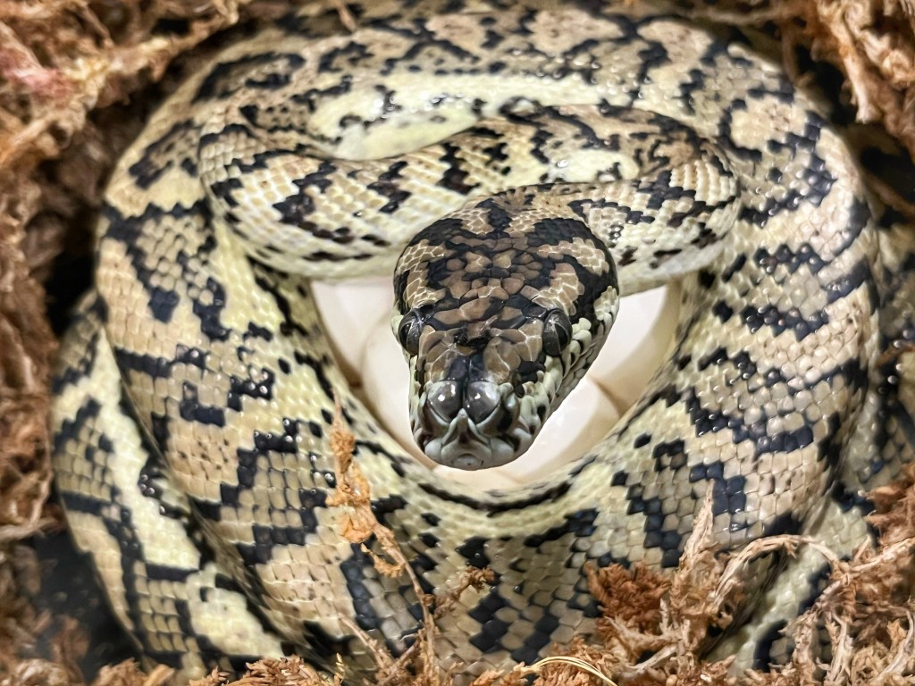 Pairing was 2017 super caramel female and male produced by Inland Reptile. A small clutch of 6 good eggs were laid on 4/12/2024. 1.2 super caramel hatched (3 dead in egg).